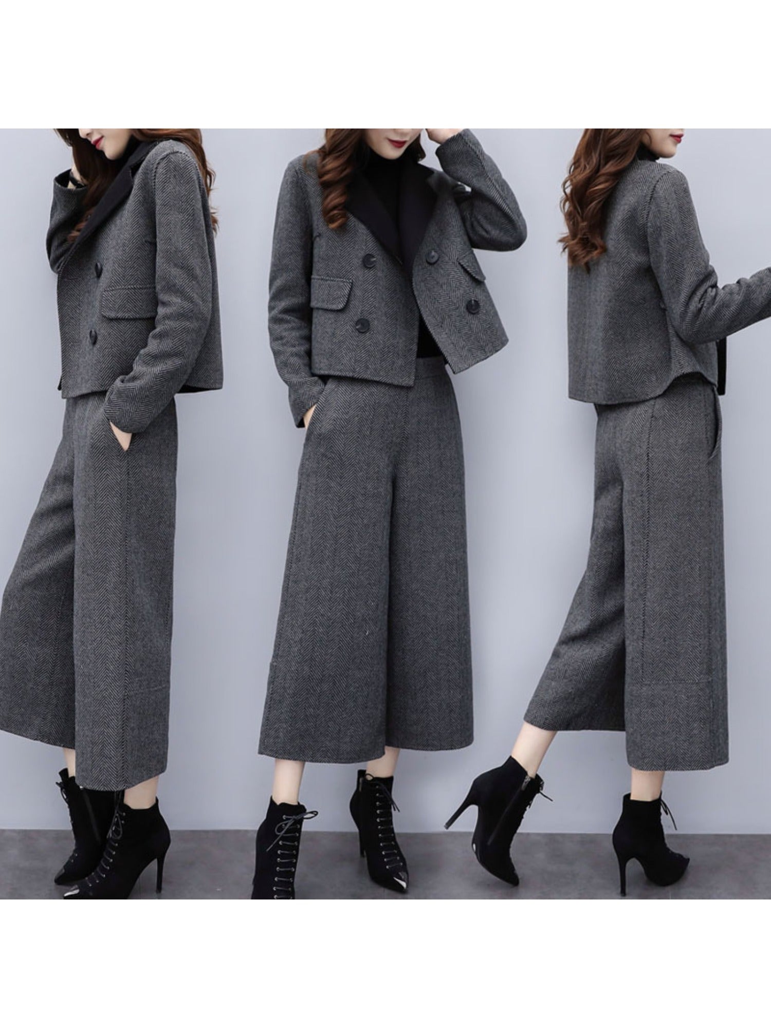 In the autumn of 2025, a two-piece Japanese suit for women, featuring a herd-patterned coat and wide-leg pants, is versatile and fashionable with a strong sense of design, Office Wear, Everyday Outfit, Modern Suit, Chinese Ch