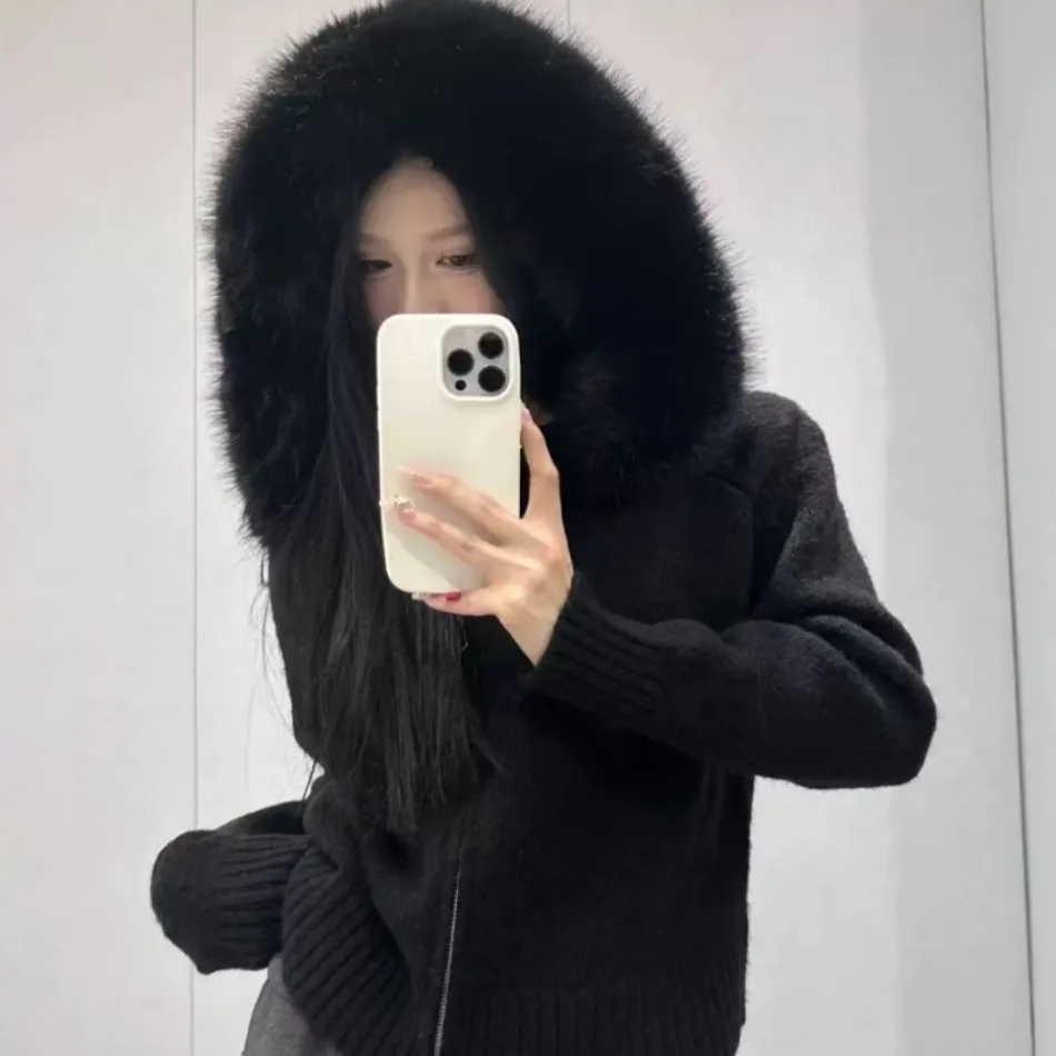 Retro Knitted Cardigan with Fur Collar – Winter Edition