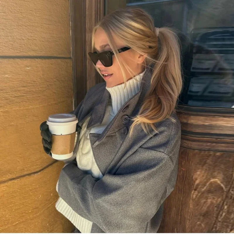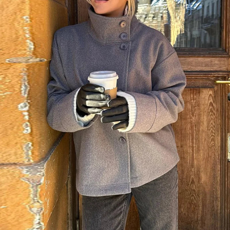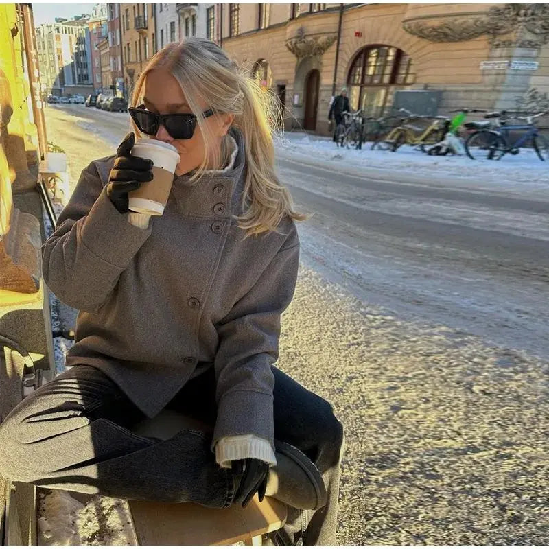 Stand Collar Women Winter Woolen Coats 2025 Spring Single Breasted Loose Female Long Sleeve Jacket Office Lady Street Short Coat