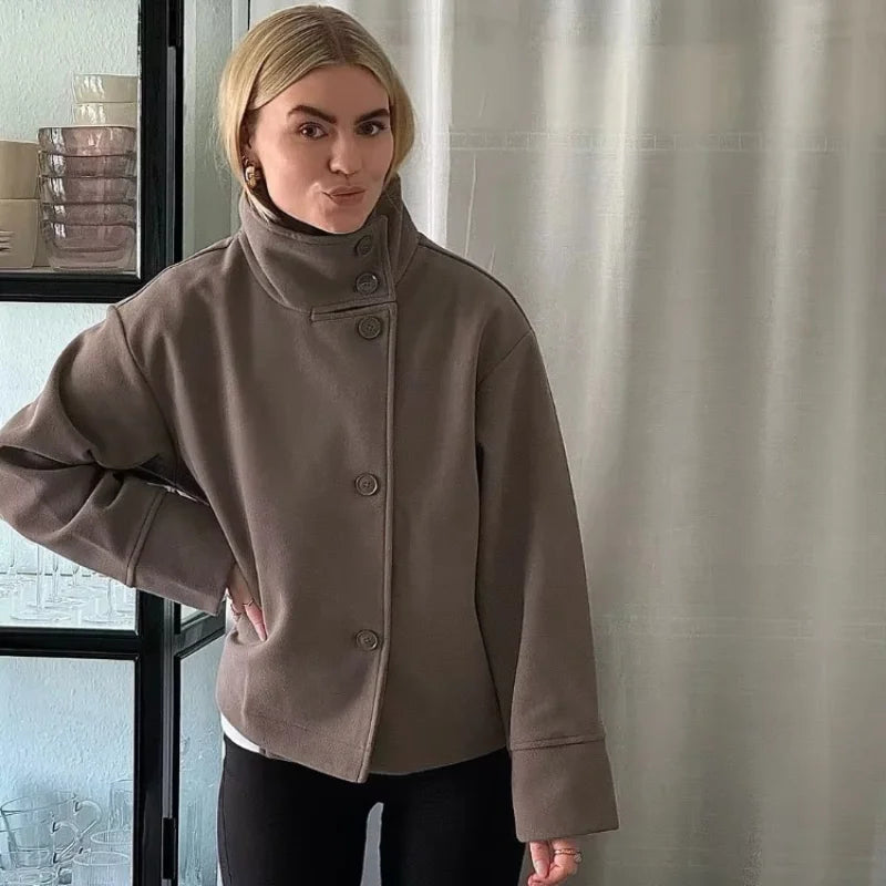 Street Women's Short Woolen Coat Stand Collar Single Breasted Long Sleeve Pockets Jacket 2025 Autumn Lady Casual Commute Outwear
